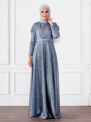 Moda Sinanlar Mavi Ahsen Abiye Elbise