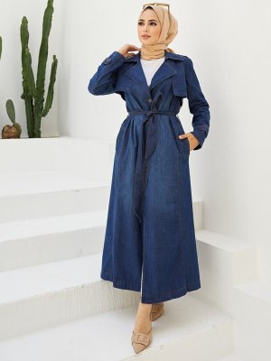 Neways Koyu Mavi Düğme Detaylı Trençkot