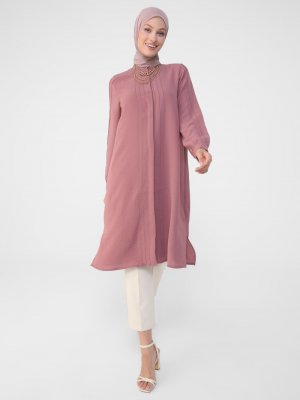 Refka Açık Mürdüm Nervür Detaylı Aerobin Uzun Tunik