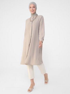 Refka Açık Vizon Nervür Detaylı Aerobin Uzun Tunik