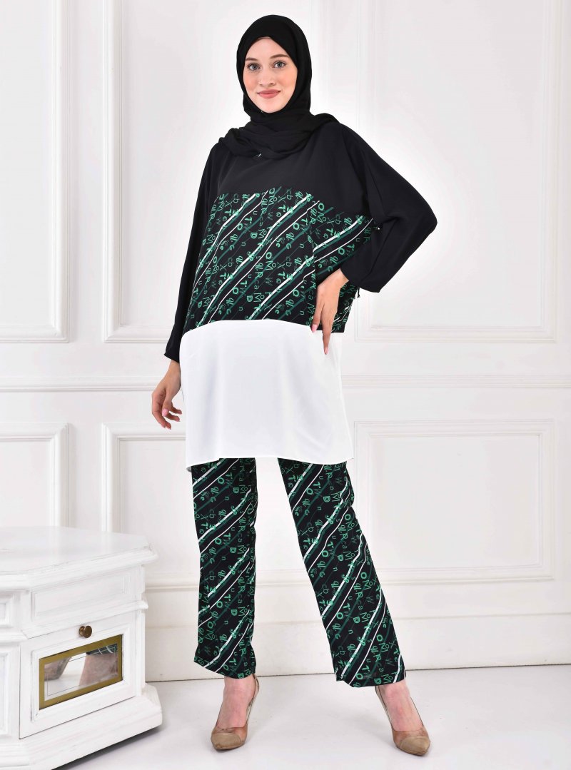 Tuncay Yeşil Siyah Tunik & Pantolon İkili Takım