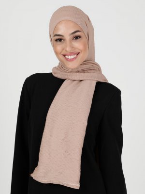 Balse Eşarp Açık Vizon Buklet Likralı Şal