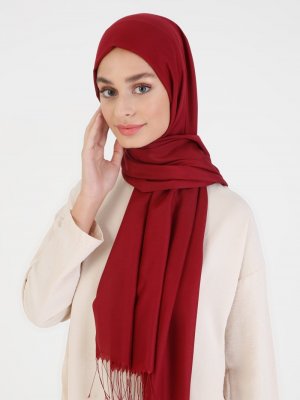 Renkli Butik Eşarp Bordo Püskül Detaylı Şal