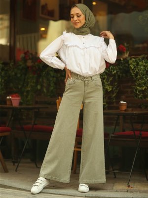 Neways Haki Bol Paça Kot Pantolon