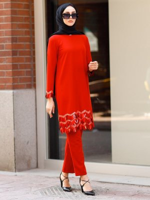Ebru Çelikkaya Kiremit Lina Tunik & Pantolon İkili Takım
