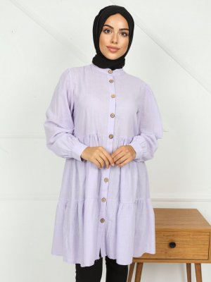 Pink Lady`s Lila Boydan Düğmeli Tunik