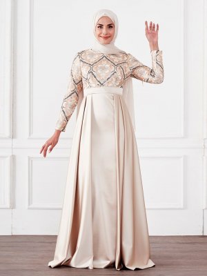 Moda Sinanlar Bej Azra Abiye Elbise