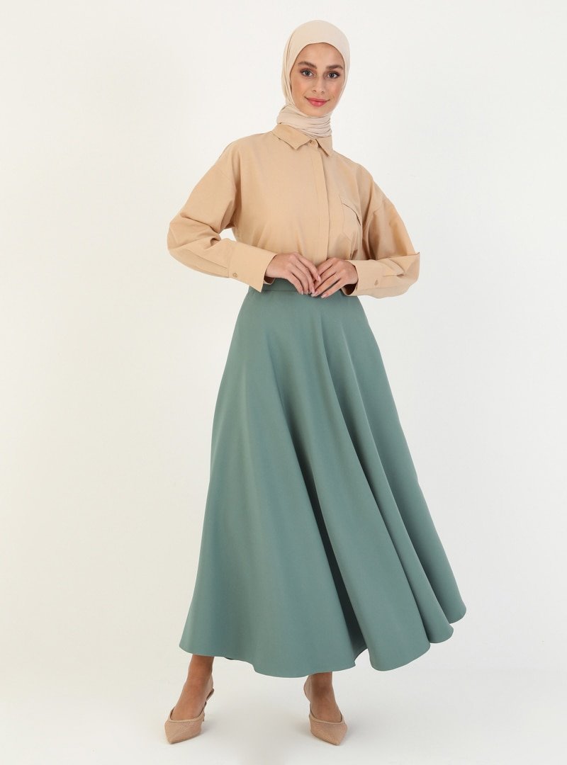 ONX10 Su Yeşili Beli Lastikli Etek