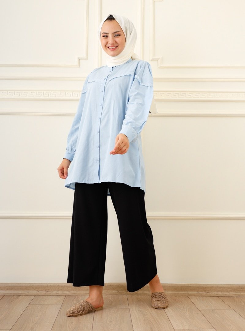 Moda Dua Mavi Güpürlü Gömlek Tunik