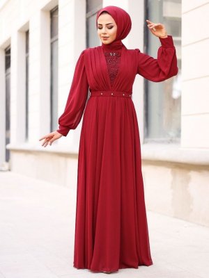 Ebru Çelikkaya Bordo Abiye Elbise