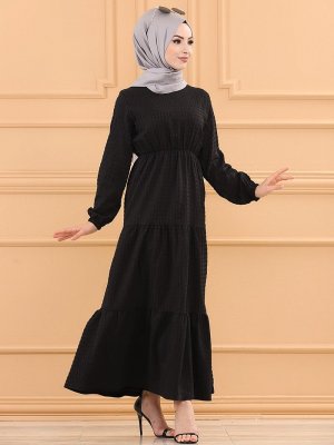 Tofisa Siyah Beli Lastikli Elbise