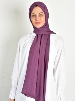 Burden İpek Mürdüm Desenli Şifon Şal