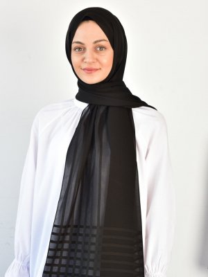 Burden İpek Siyah Desenli Şifon Şal