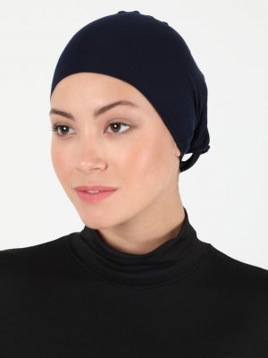 Sevda Bone Lacivert Dikişsiz Bağcıklı Bone