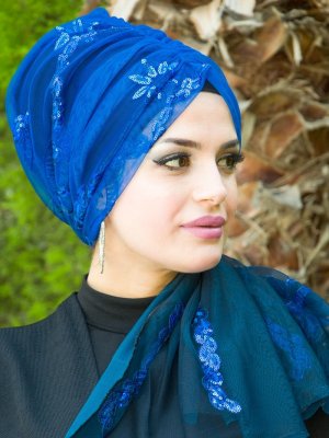 AİŞE TESETTÜR Saks Desenli Hazır Türban