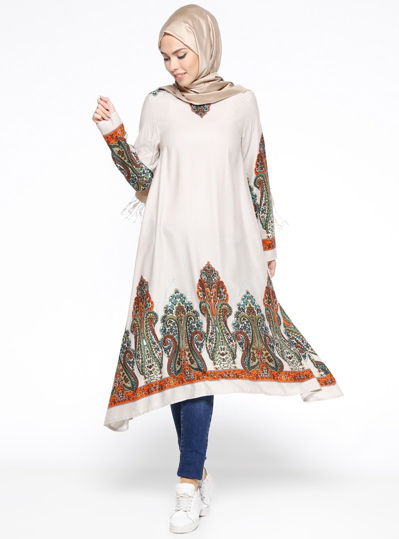 ZENANE Bej Desenli Tunik