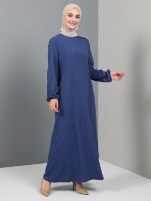 Tavin İndigo Kol Uçları Lastik Detaylı Elbise