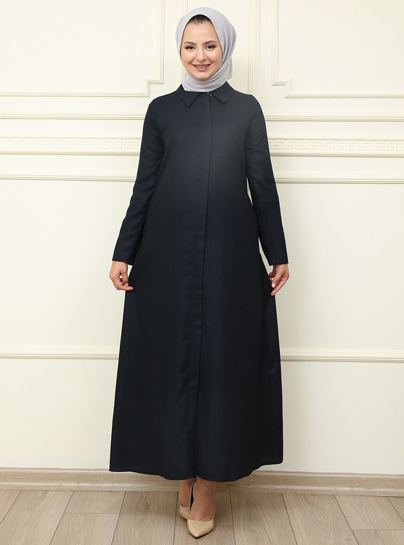 Moda Dua Siyah Sivri Yaka Ferace