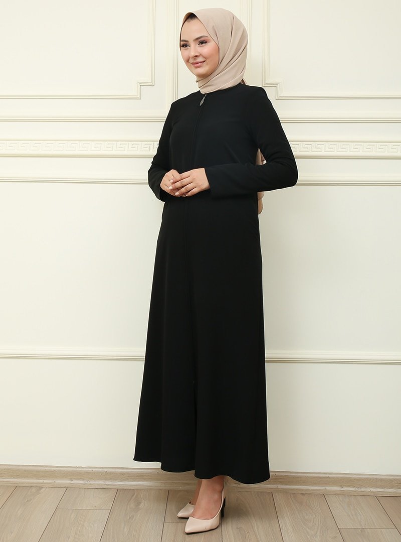 Moda Dua Siyah Fermuarlı Ferace