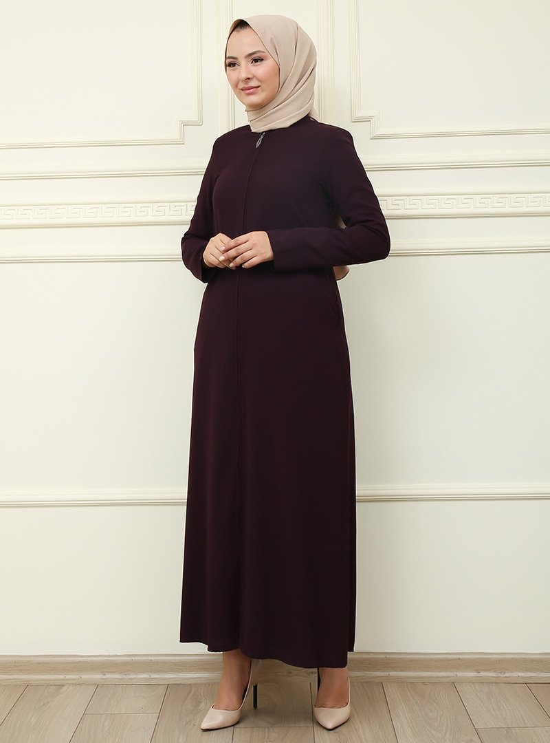 Moda Dua Mürdüm Fermuarlı Ferace
