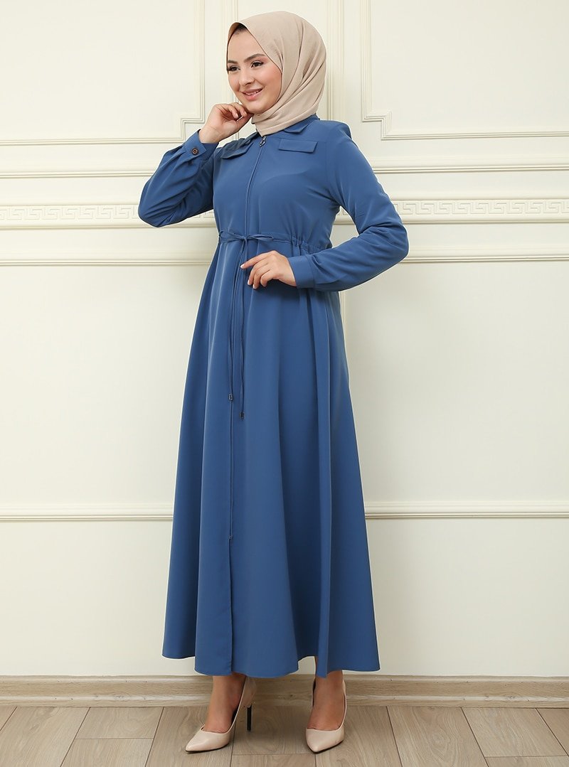 Moda Dua İndigo Boydan Fermuarlı Ferace