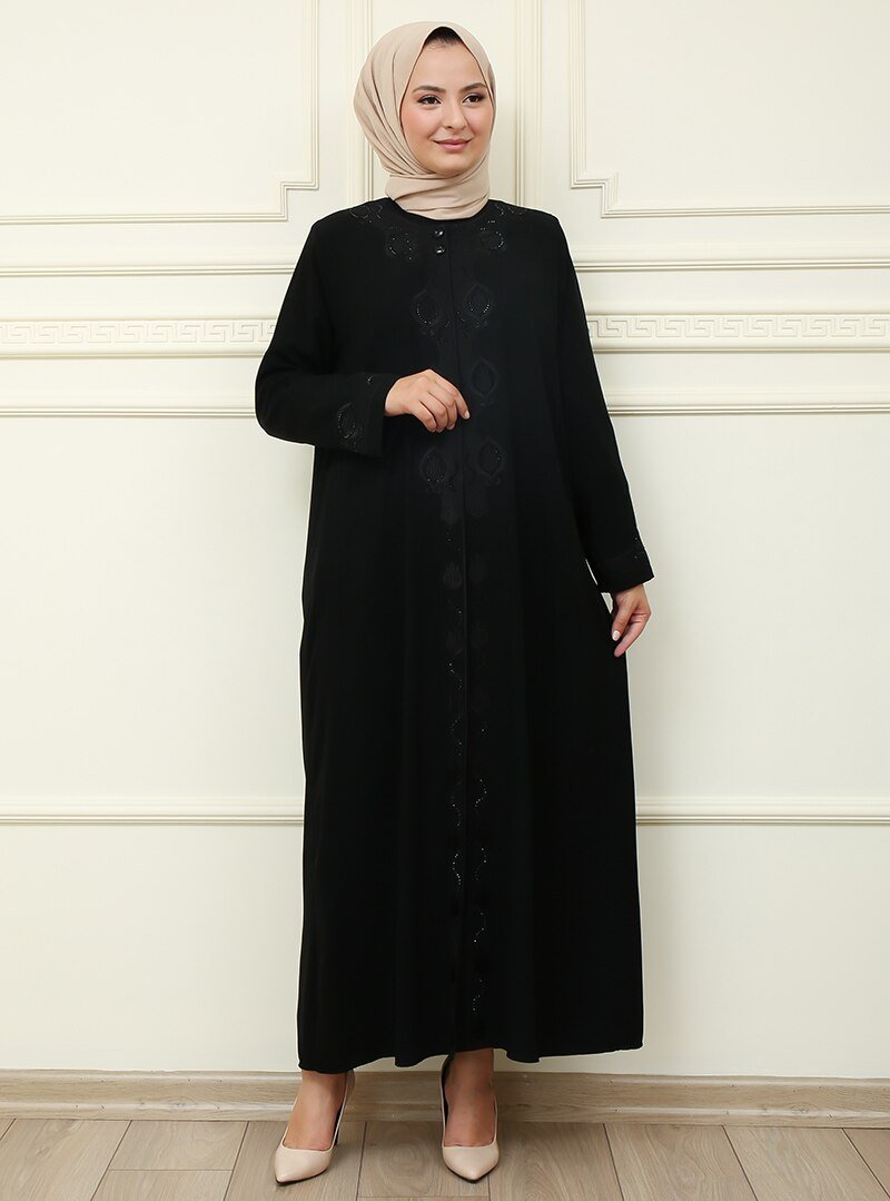 Moda Dua Siyah Yaka Düğmeli Ferace