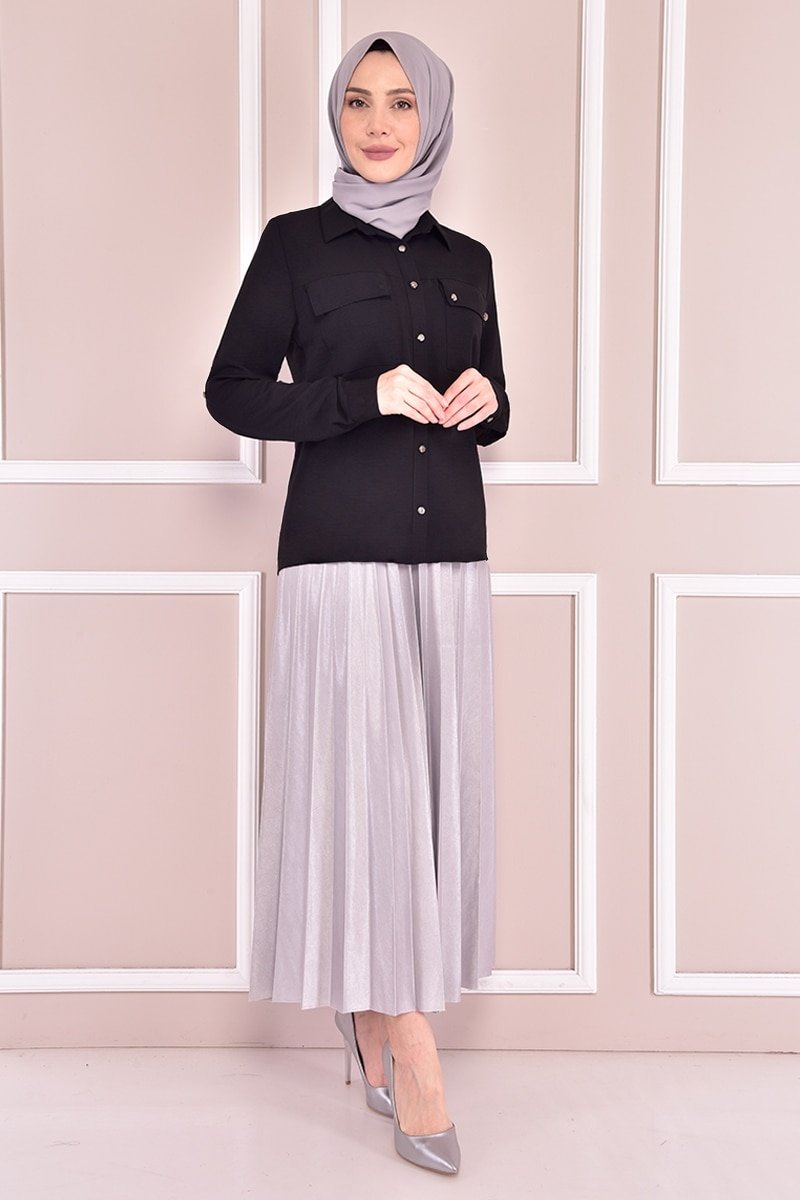 Moda Merve Siyah Düğmeli Tunik