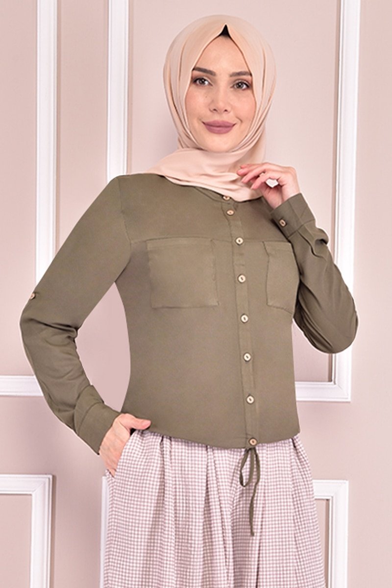 Moda Merve Haki Düğmeli Tunik