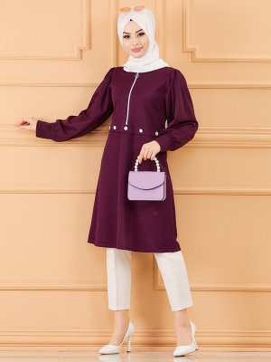 Tofisa Mürdüm Fermuar Detaylı Tunik