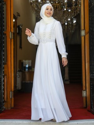 Amine Hüma Ekru Kelebek Abiye Elbise