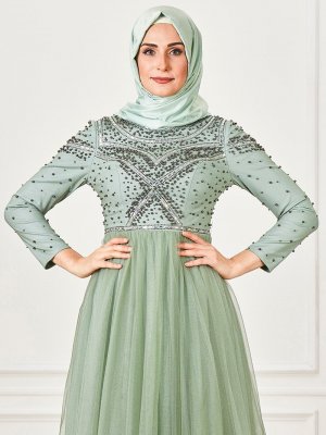 Moda Sinanlar Yeşil Çisil Abiye Elbise