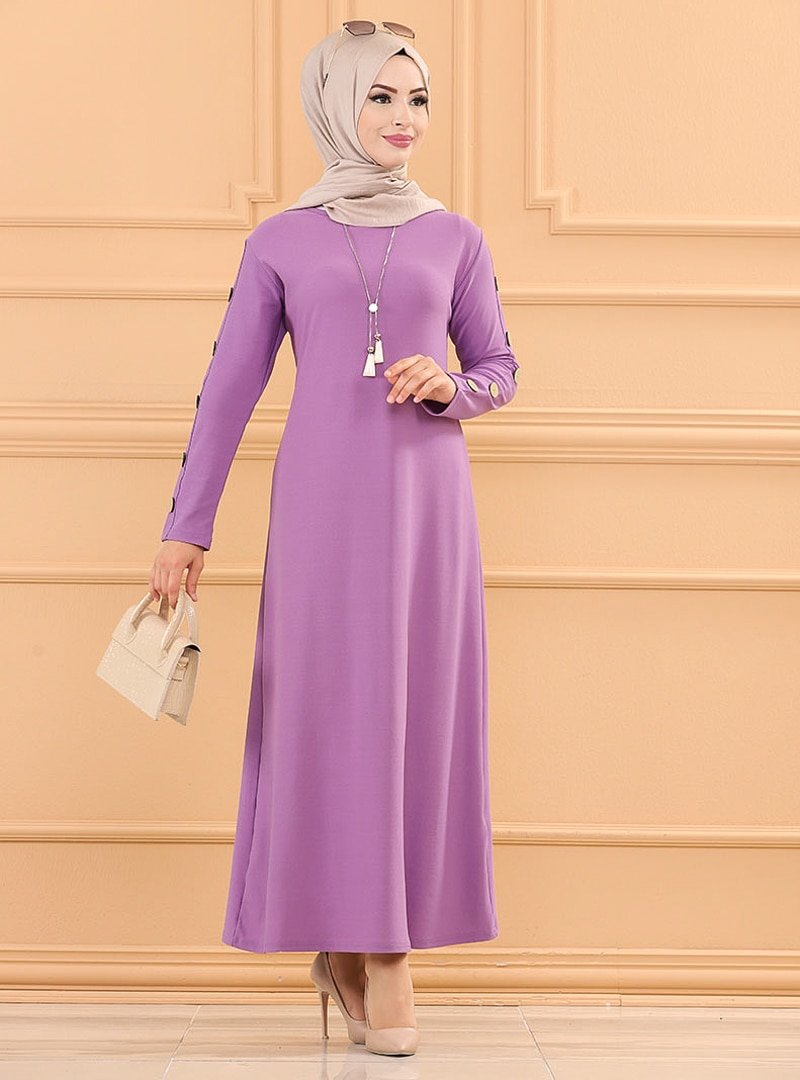 Tofisa Lila Düğme Detaylı Elbise