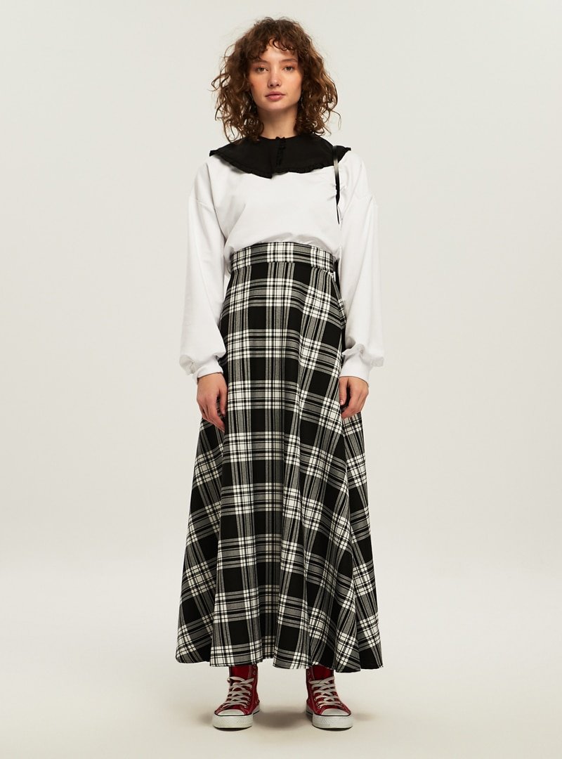 Ceylan Otantik Siyah Ekose Kloş Etek