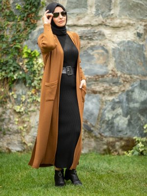 MODA NUR SEDA Taba Cepli Triko Hırka