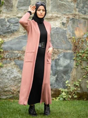MODA NUR SEDA Gül Kurusu Cepli Triko Hırka