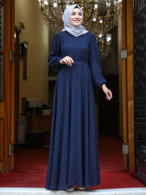 Amine Hüma Lacivert Şura Abiye Elbise