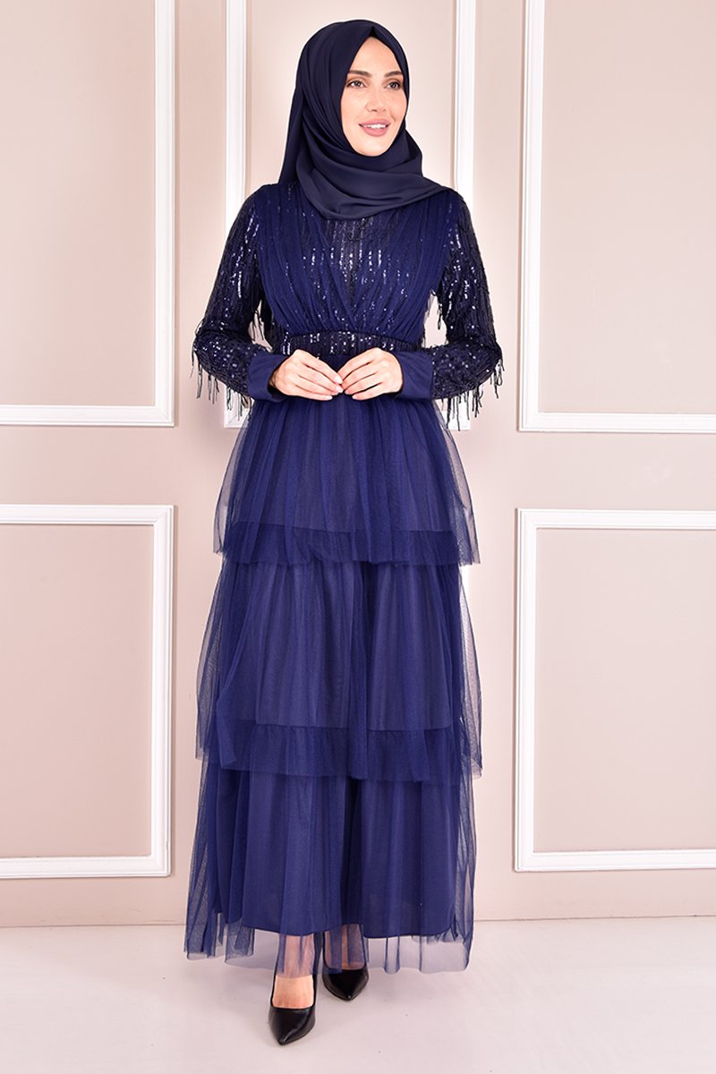 Moda Merve Lacivert Pullu Abiye Elbise