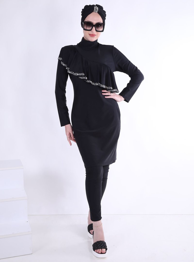 Ns Tasarım Tesettür Mayo Siyah Allerli Mayo Takım
