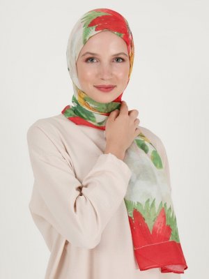 Soft Scarfs Kırmızı Küpeli Çiçeği Desenli Şal