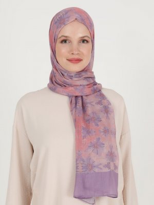Soft Scarfs Lila Gül Çiçek Desenli Şal