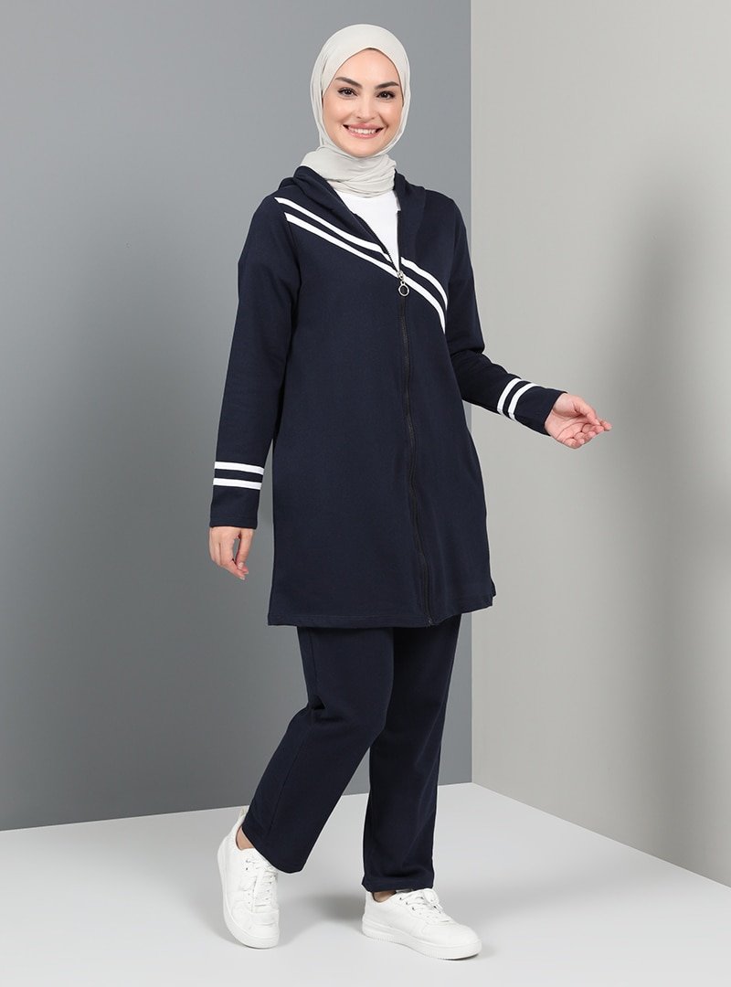 Tavin İndigo Şeritli Kapişonlu Eşofman Takımı