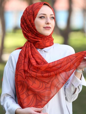 STELLA Turuncu Yaprak Desenli Şifon Şal