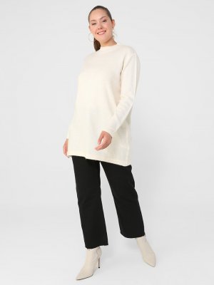 Alia Kırık Ekru Büyük Beden Balıkçı Yaka Triko Tunik