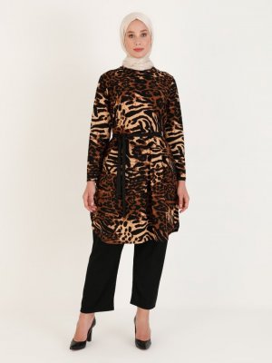 GELİNCE Siyah Kahverengi Tunik & Pantolon İkili Takım