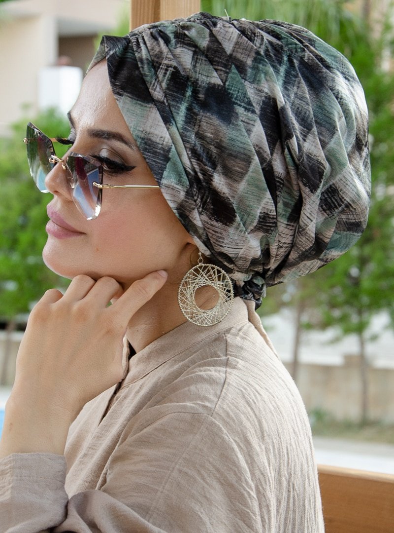 AİŞE TESETTÜR Haki Desenli Hazır Türban
