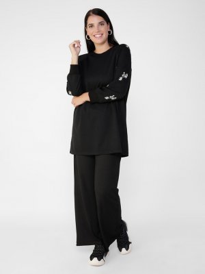 Alia Siyah Büyük Beden Kolları Nakış Detaylı Tunik