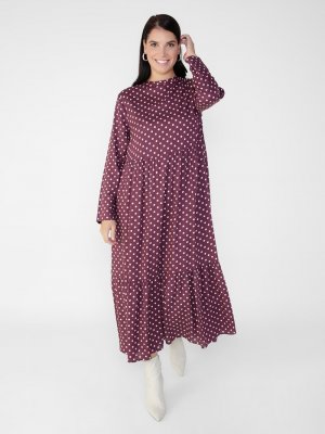 Alia Bordo Büyük Beden Doğal Kumaşlı Puantiye Desenli Elbise