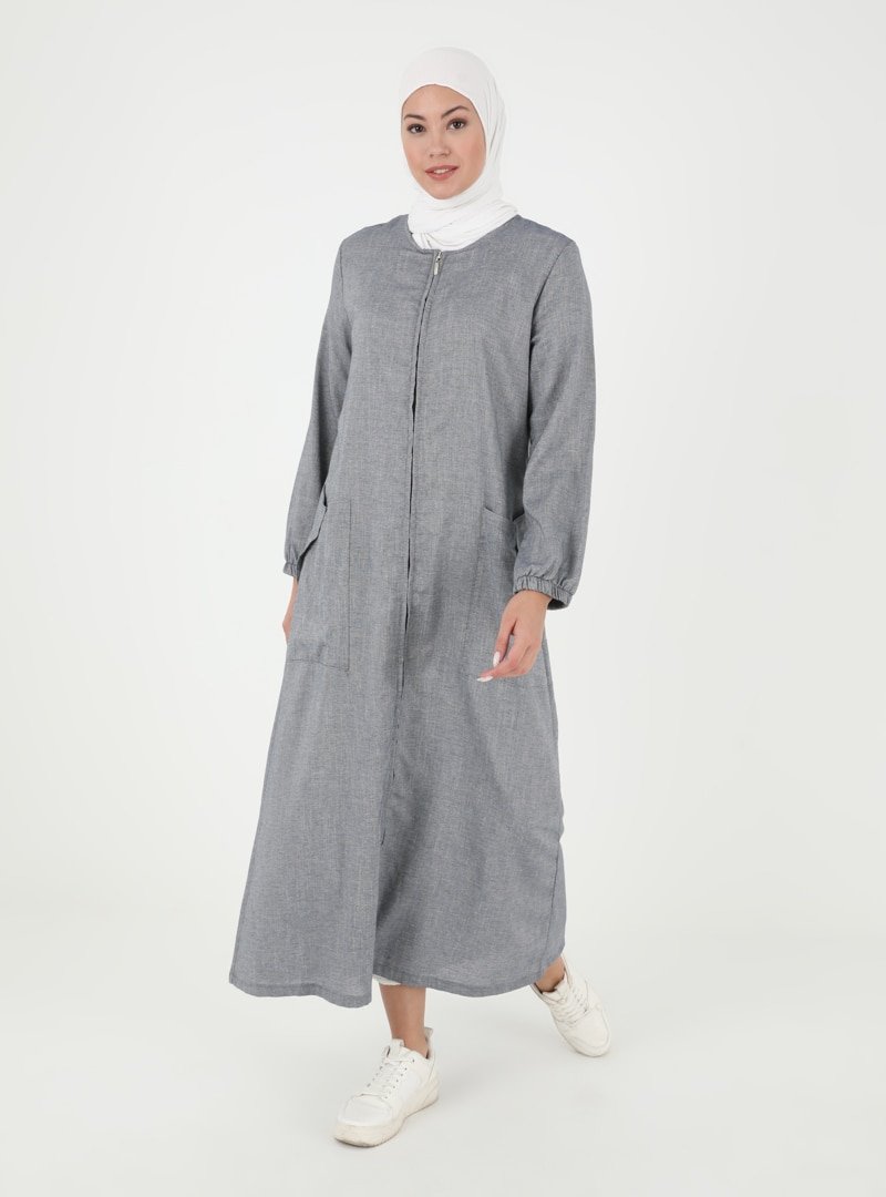 Night Blue Collection Gri Boydan Fermuarlı Kot Kap