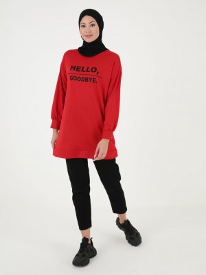 Tekbir Kırmızı Baskılı Tunik