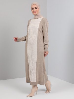 Tavin Vizon Bisiklet Yaka Renkli Örgü Detaylı Triko Elbise